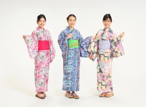 足利ファイバ―テクノロジープロジェクト(田野雅己代表/当所常議員)では、大正時代から昭和初期にかけて庶民の着物として一世を風靡した「足利銘仙」の製造技法を応用し、オリジナルの「足利絣浴衣」を制作しました。生地は経糸にポリエステル、緯糸に綿や綿を使い、柄を作為的にずらしてぼかし模様を織り上げている。プロモーション用に6種類を仕立て、8月1日に開催される足利夏まつりオープニングセレモニーで足利ミス織姫が着用し披露される。